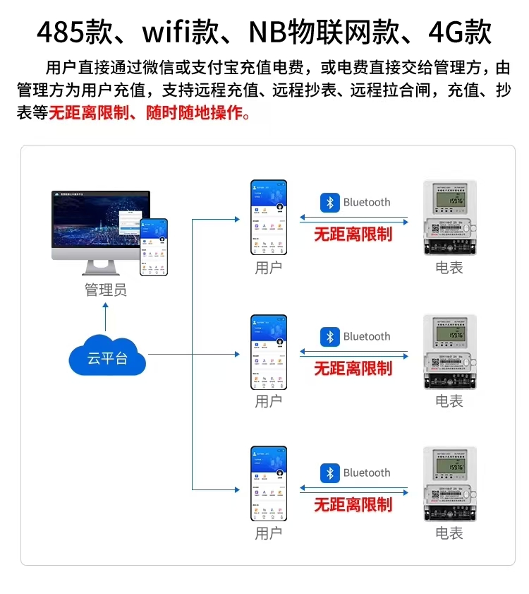管理系統:管理系統是系統的數據處理中心,它接收來自智能水電表的數據,并通過云計算、大數據等技術對數據進行存儲、分析、處理。管理系統能夠生成詳細的用量報表、費用結算單等,供用戶和管理人員查看。同時,管理系統還具備遠程控制功能,可以通過反向控制機制對智能水電表進行通斷電、停水等操作。
