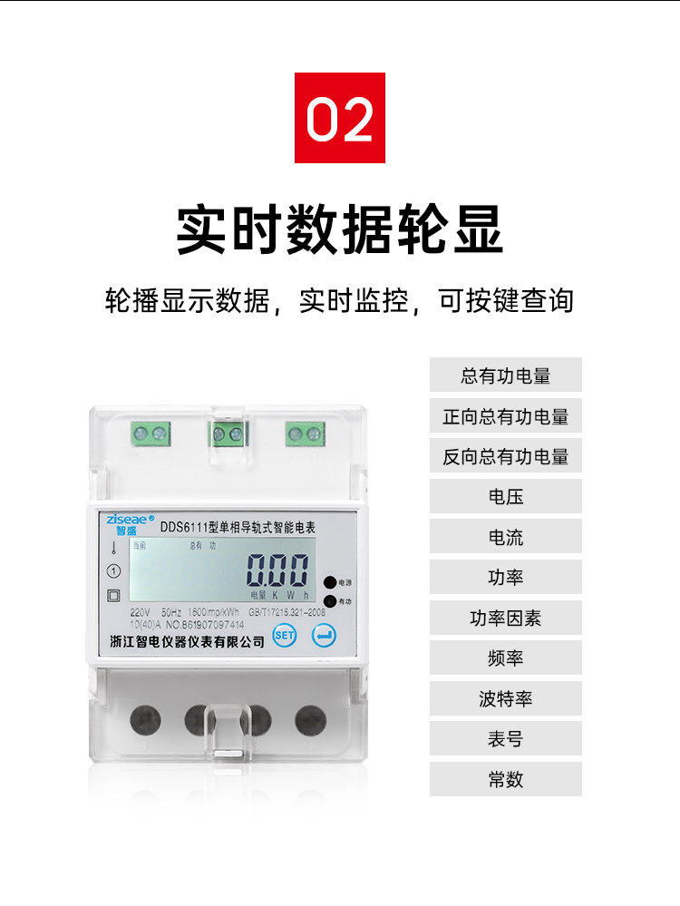 2、采用高品質(zhì)計(jì)度器顯示累計(jì)電量(6+2位),顯示清晰鮮艷直讀性好。