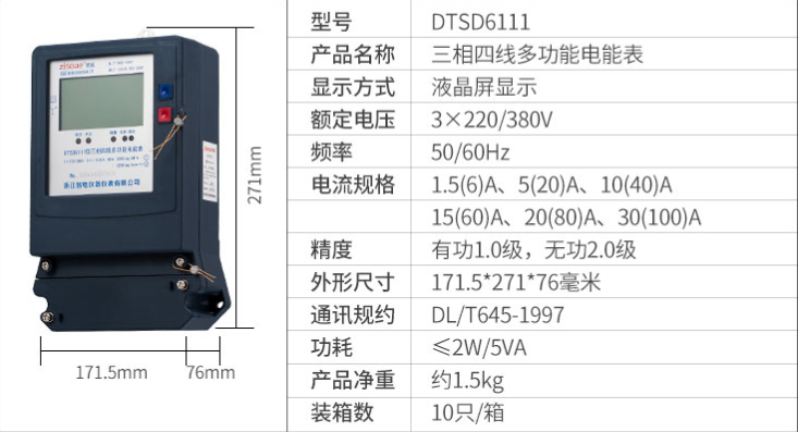 型號:DTSD6111三相四線簡易多功能(1997規約)