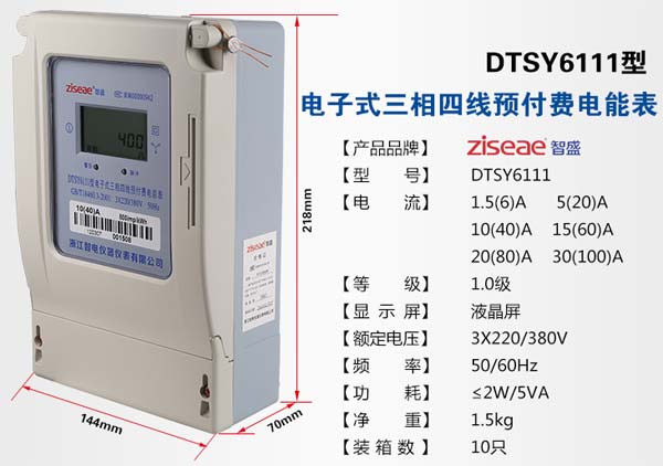DTSY6111三相預付費電表系我公司采用集成電路,16位A/D轉換、數字乘法器、應用數字采樣處理技術并由單片機處理系統進行數據的采集、處理和保存及應用SMT工藝制造的新型儀表。適用于計量額定頻率為50Hz或60Hz的三相三線或三相四線交流電網中有功電能的消耗。