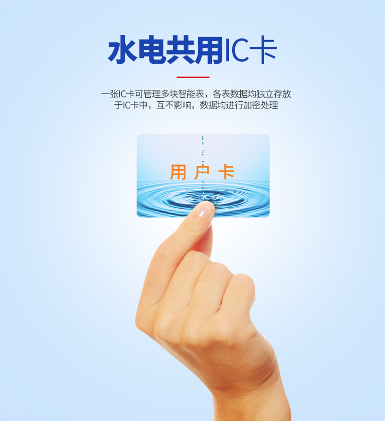 我公司生產的智能水表與電能表實現一卡通,用戶只需一張卡,即可同時管理家中所用的電表、水表。